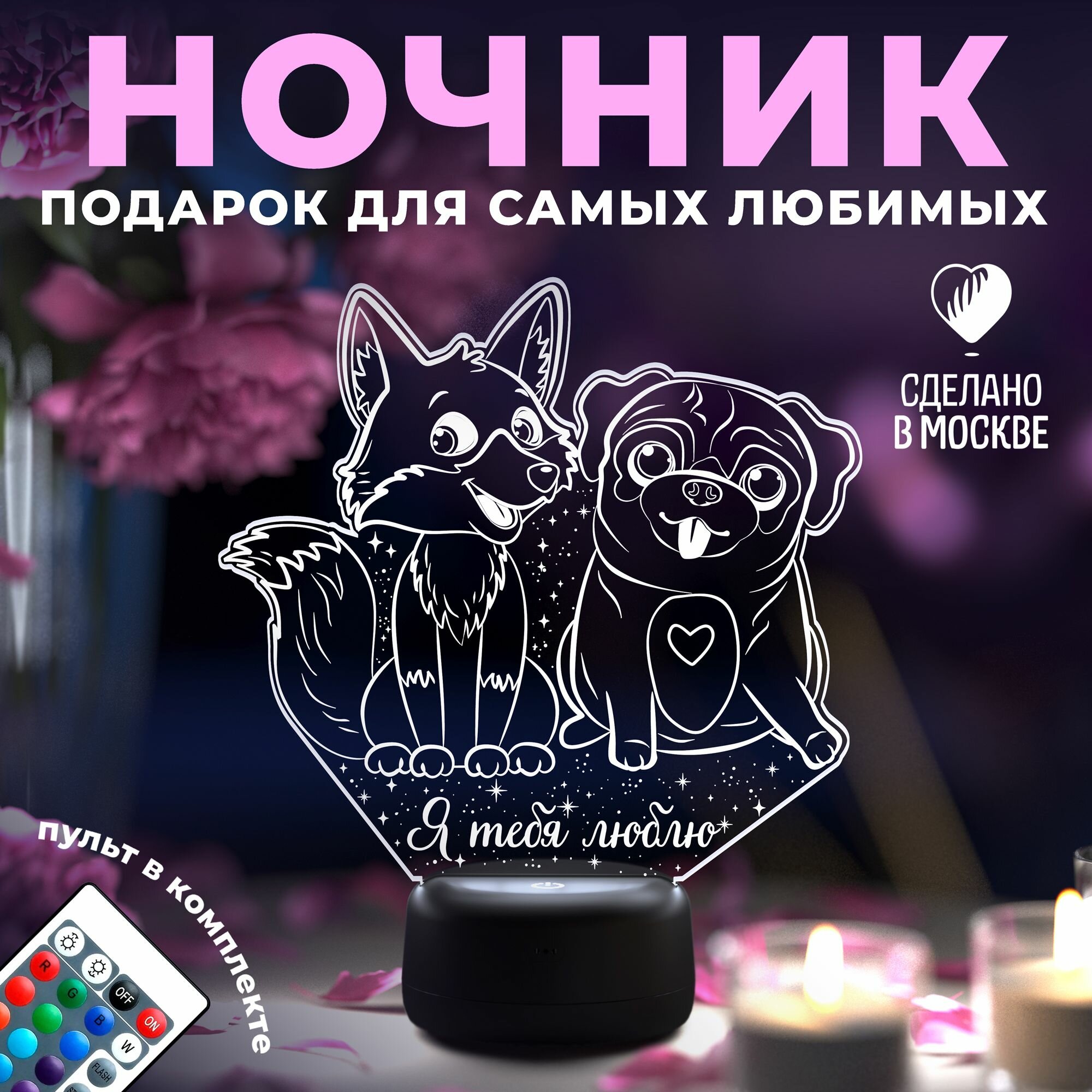10 цен на Ночник "Мопс и лисичка" девушке на 14 февраля