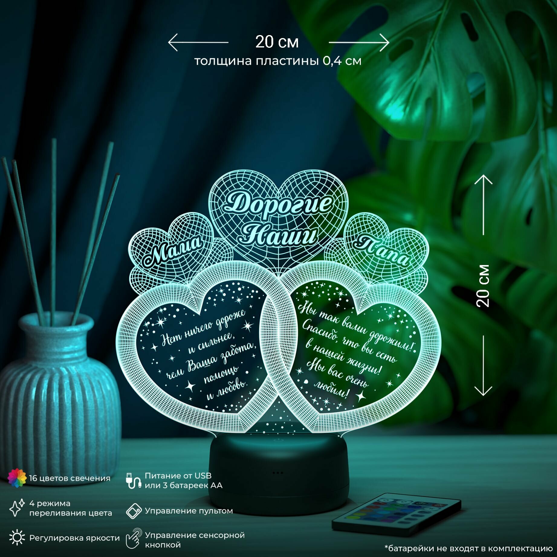 Ночник "Мама и папа" - подарок родителям на годовщину информация: