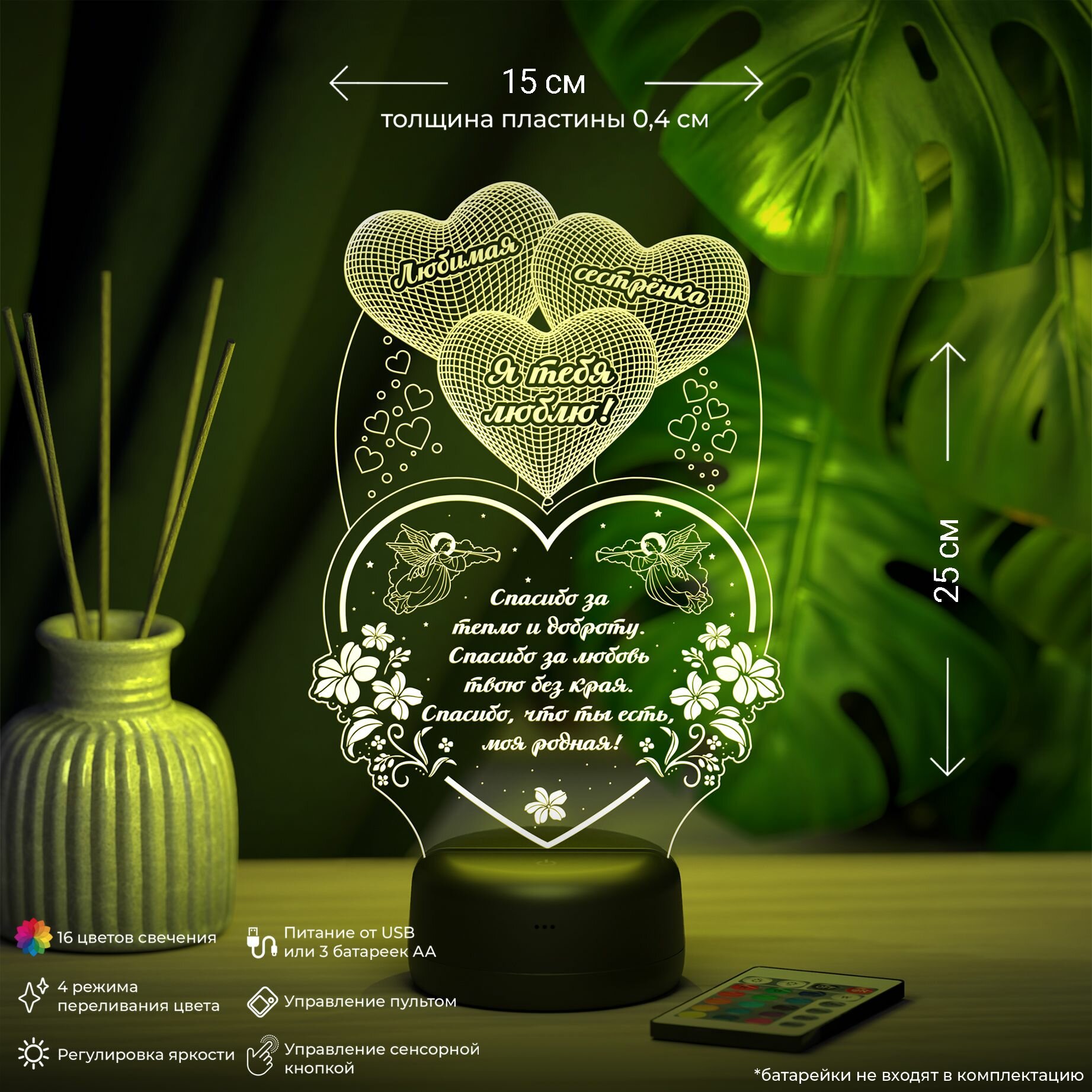 Подарок сестре Ночник "Сердце с шариками - люблю тебя" информация: