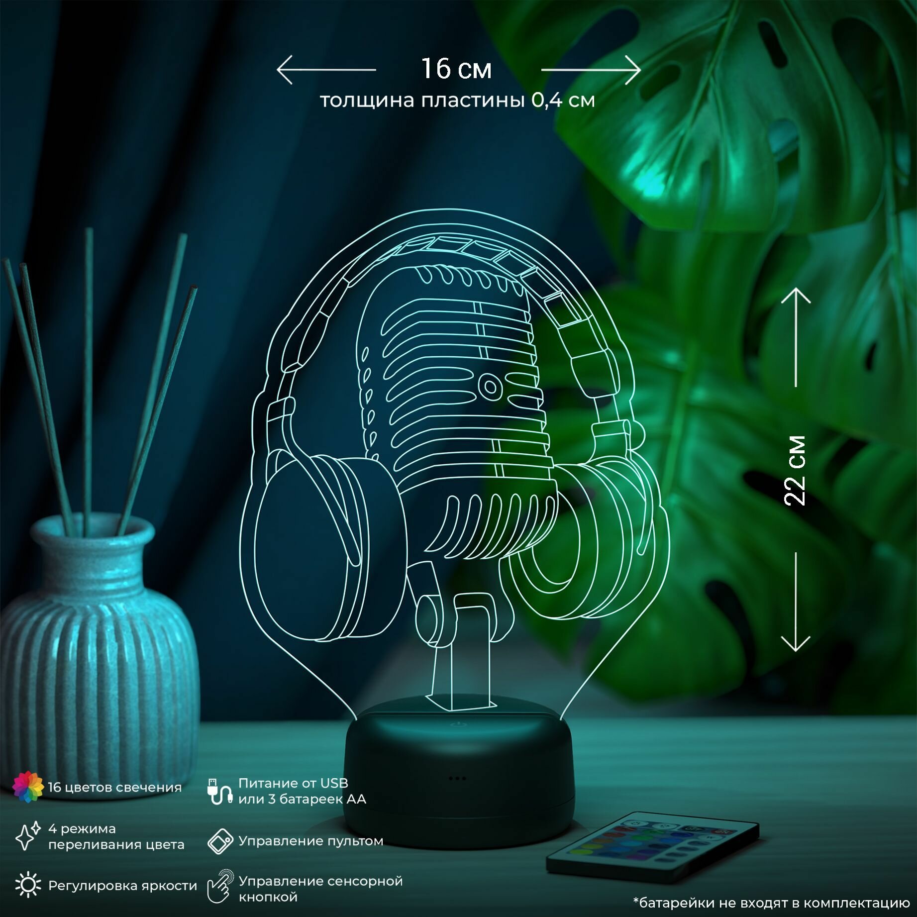 Ночник "Наушники и микрофон" - подарок, сувенир информация: