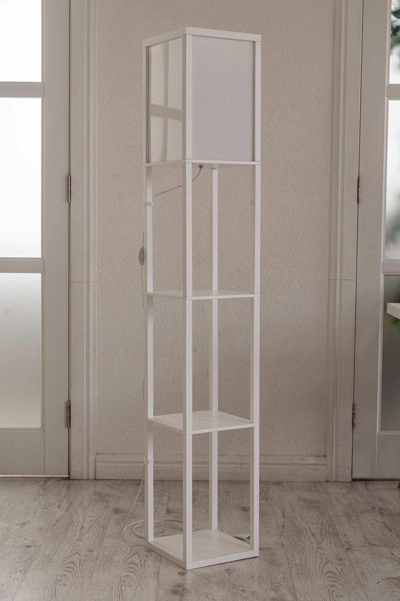 10 цен на Напольный светильник с полкой, ночник прикроватный белый