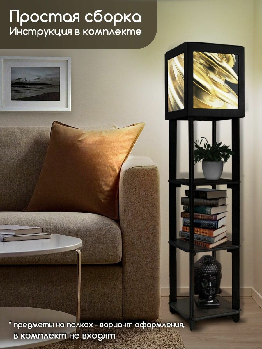 Напольная лампа с полками квадратная, напольный светильник с принтом абстракция (золото, 3д) - 541 информация: