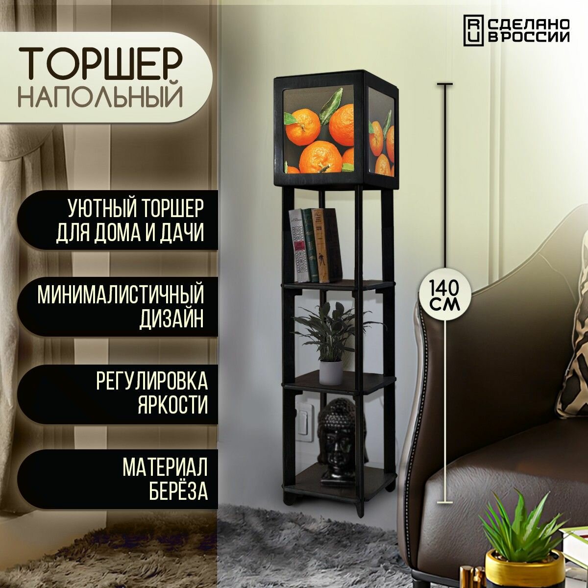 Напольная лампа с полками квадратная, напольный светильник с принтом абстракция (еда, мандарин) - 556 информация:
