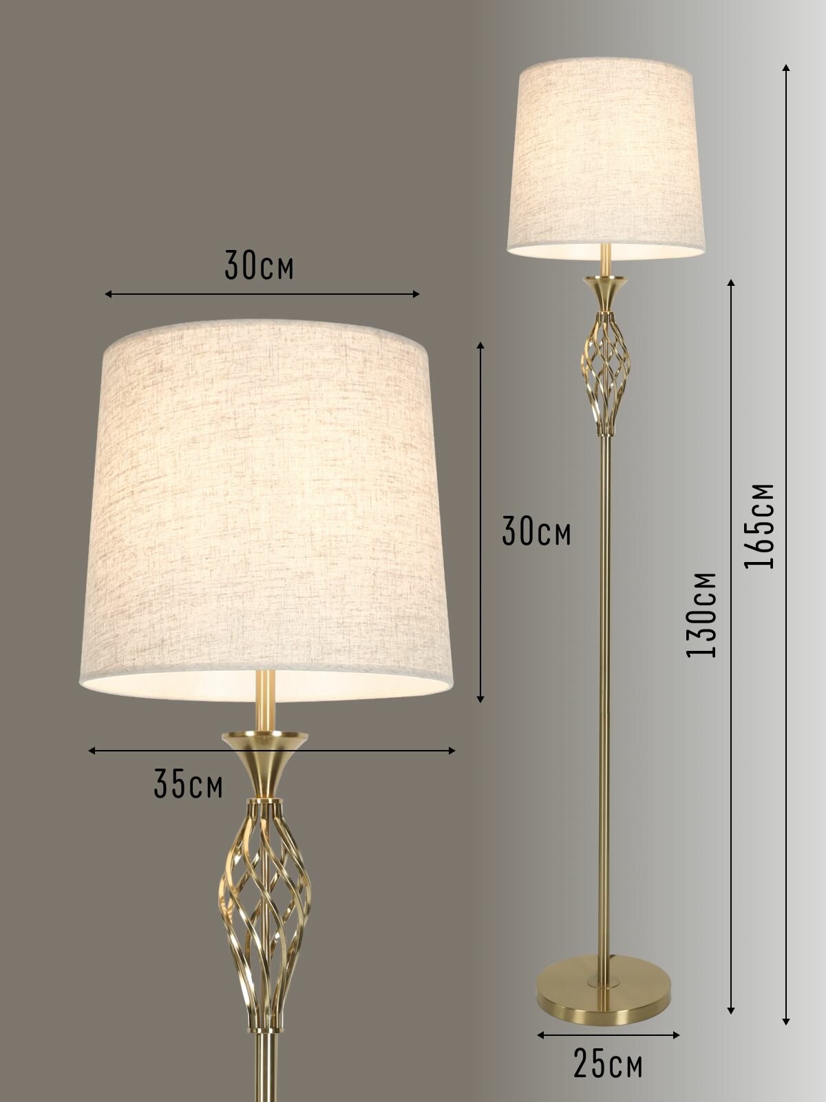 Торшер напольный ЭлисСвет светильник с тканевым абажуром, золотой 39329LF/1L GD+WT информация: