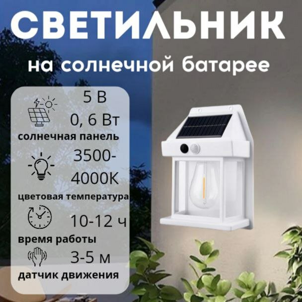 Отзывы на Уличный светильник с датчиком движения на солнечной батарее, белый