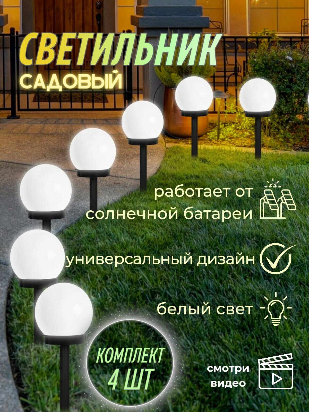 10 цен на Светильник уличный садовый 4шт Шары на солнечной батарее для дачи белый
