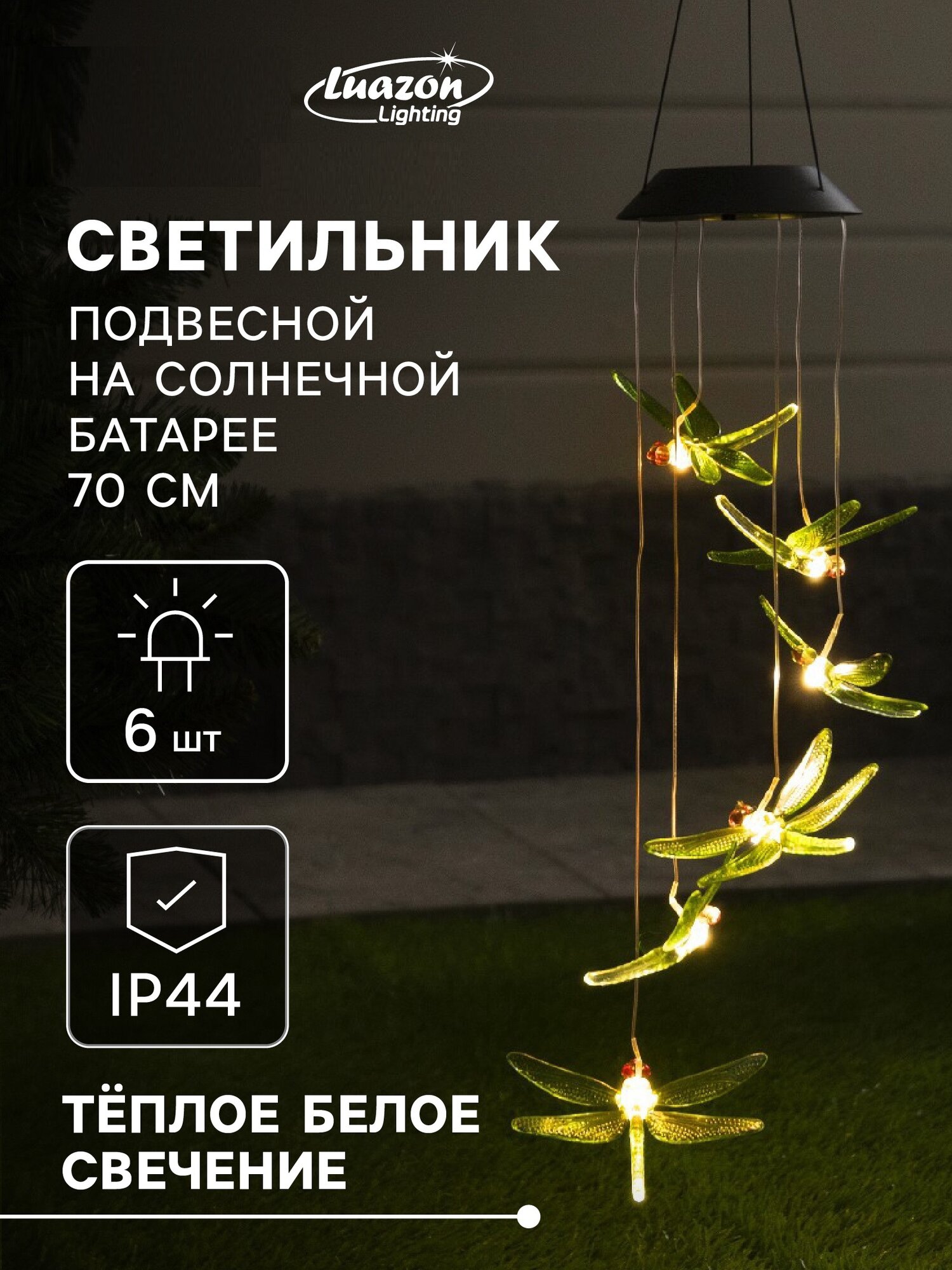 Садовый светильник на солнечной батарее «Стрекозы», 12.5×86×12.5 см, 6 LED, свечение тёплое белое информация: