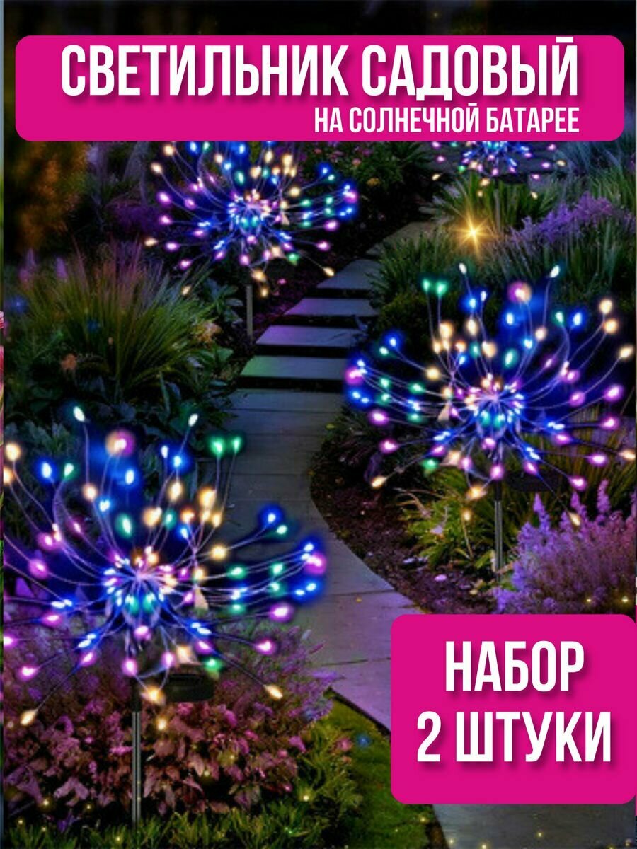 Светильник уличный садовый светодиодный на солнечной батарее, освещение украшние для дома, дачи, сада, салют набор 2 шт информация: