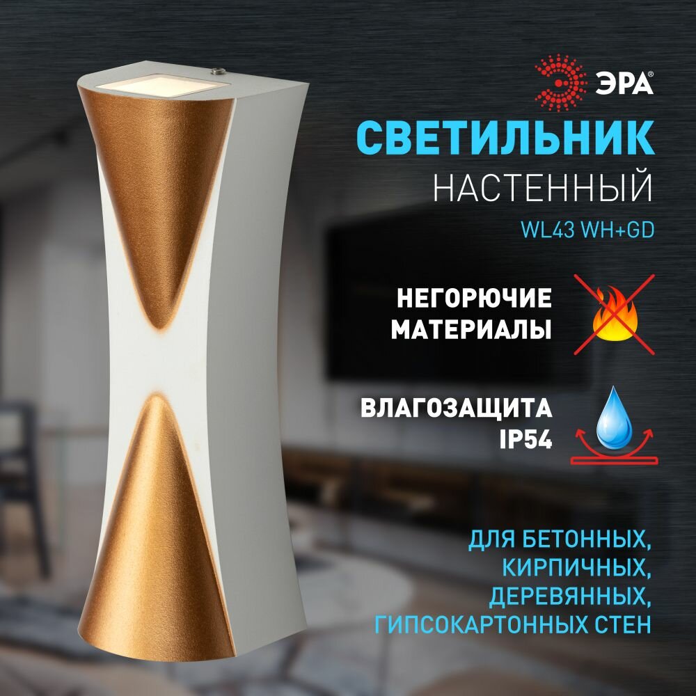 Светильник спот накладной уличный фасадный светодиодный ЭРА WH+GD 6Вт 3500К IP54, белый + золото информация: