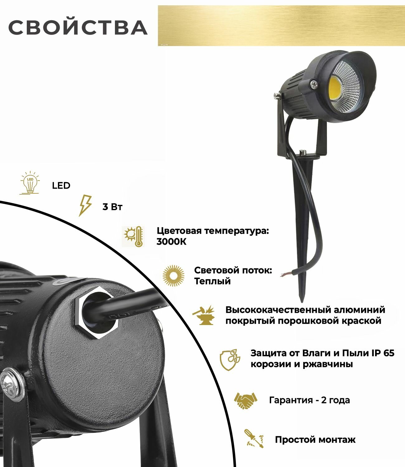 Ландшафтный светильник светодиодный садовый прожектор грунтовый уличный информация: