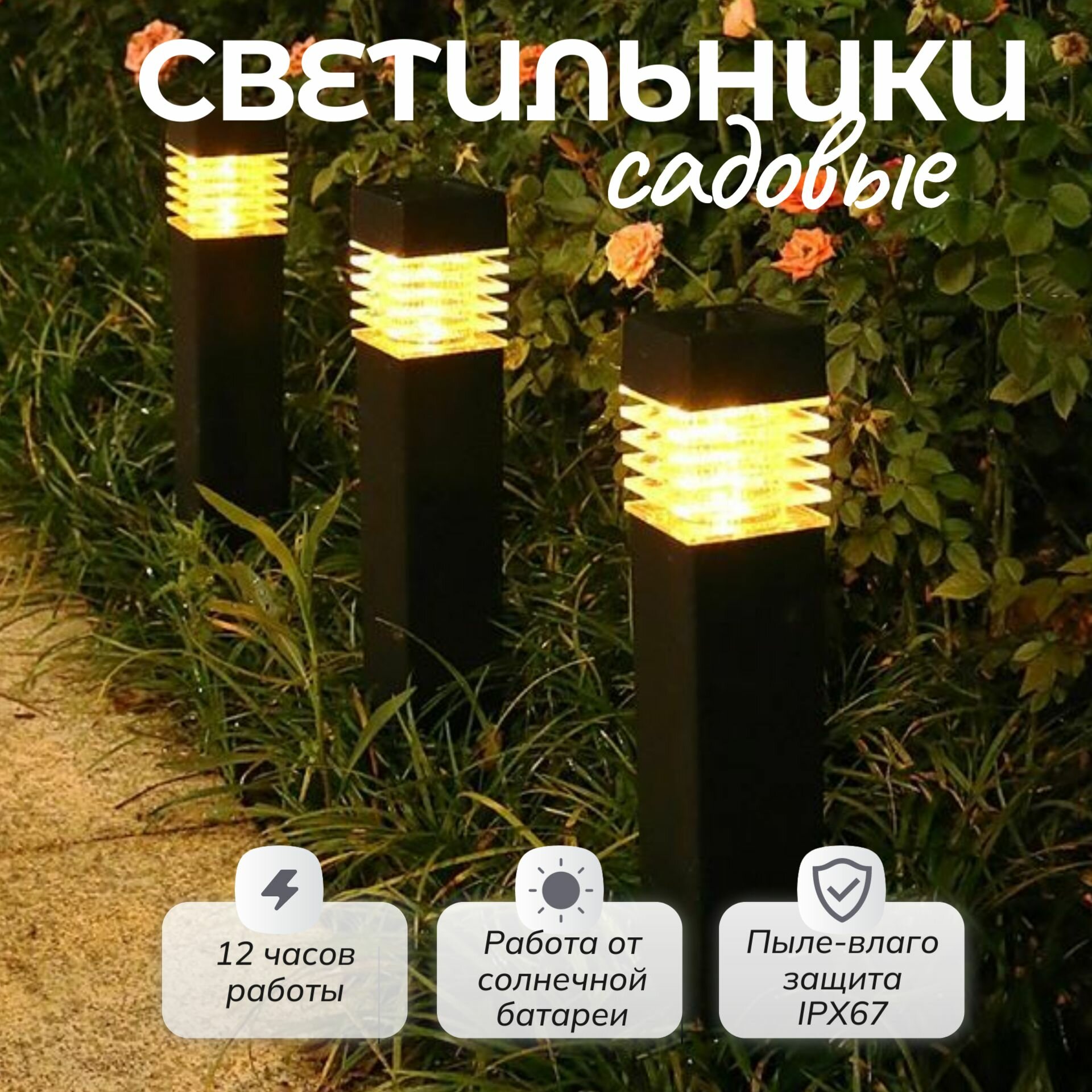 Отзывы на Светильник садовый на солнечной батарее уличный 4 штуки в комплекте