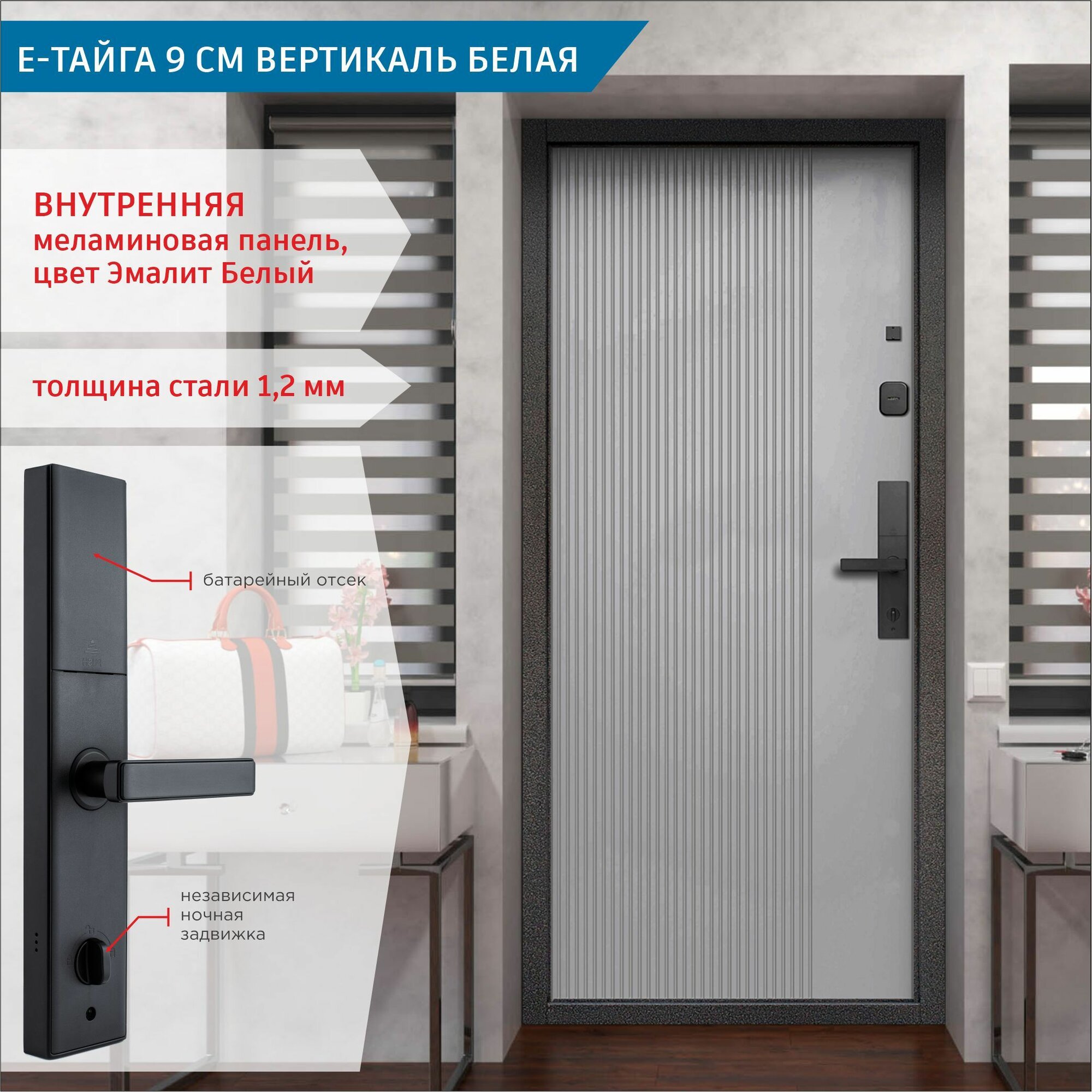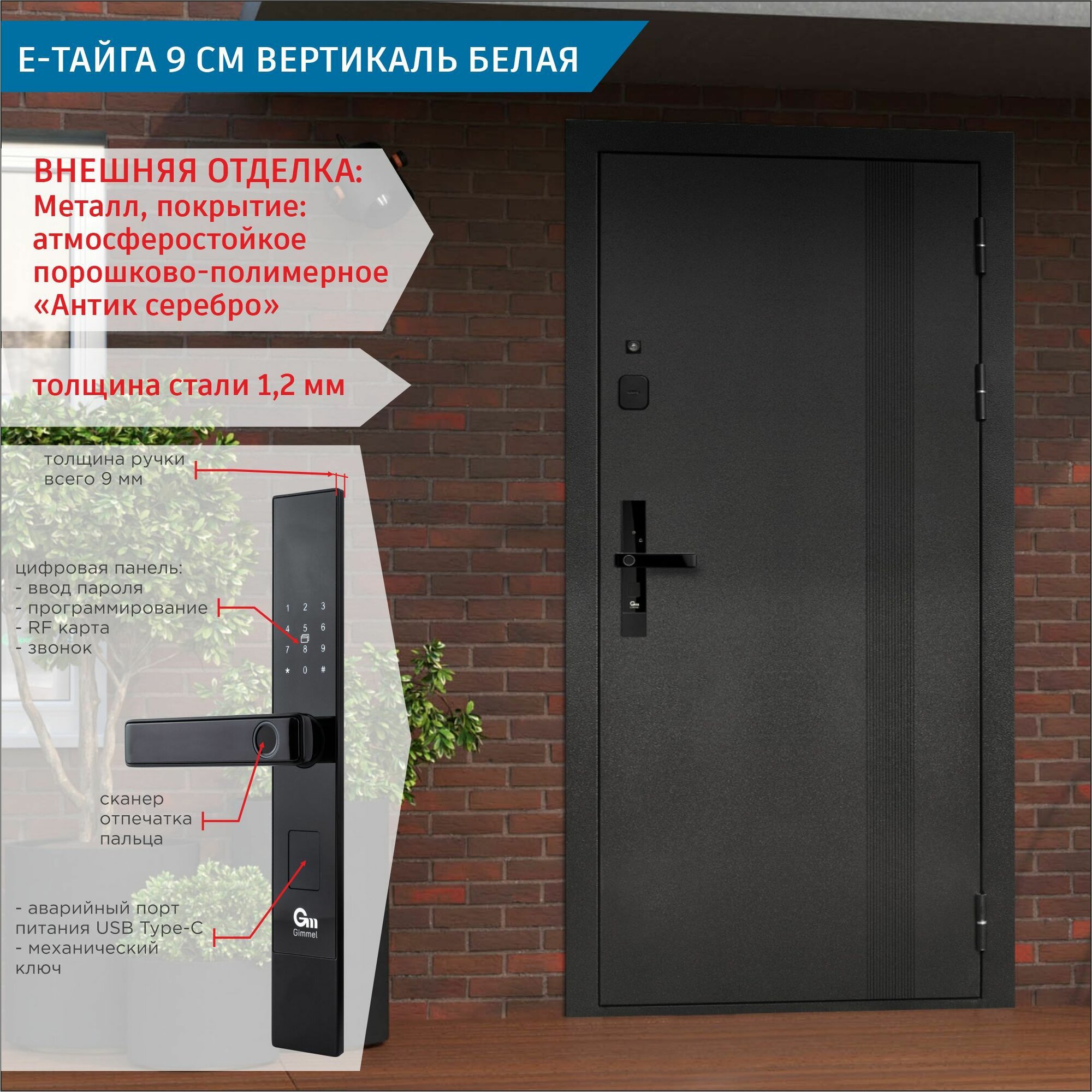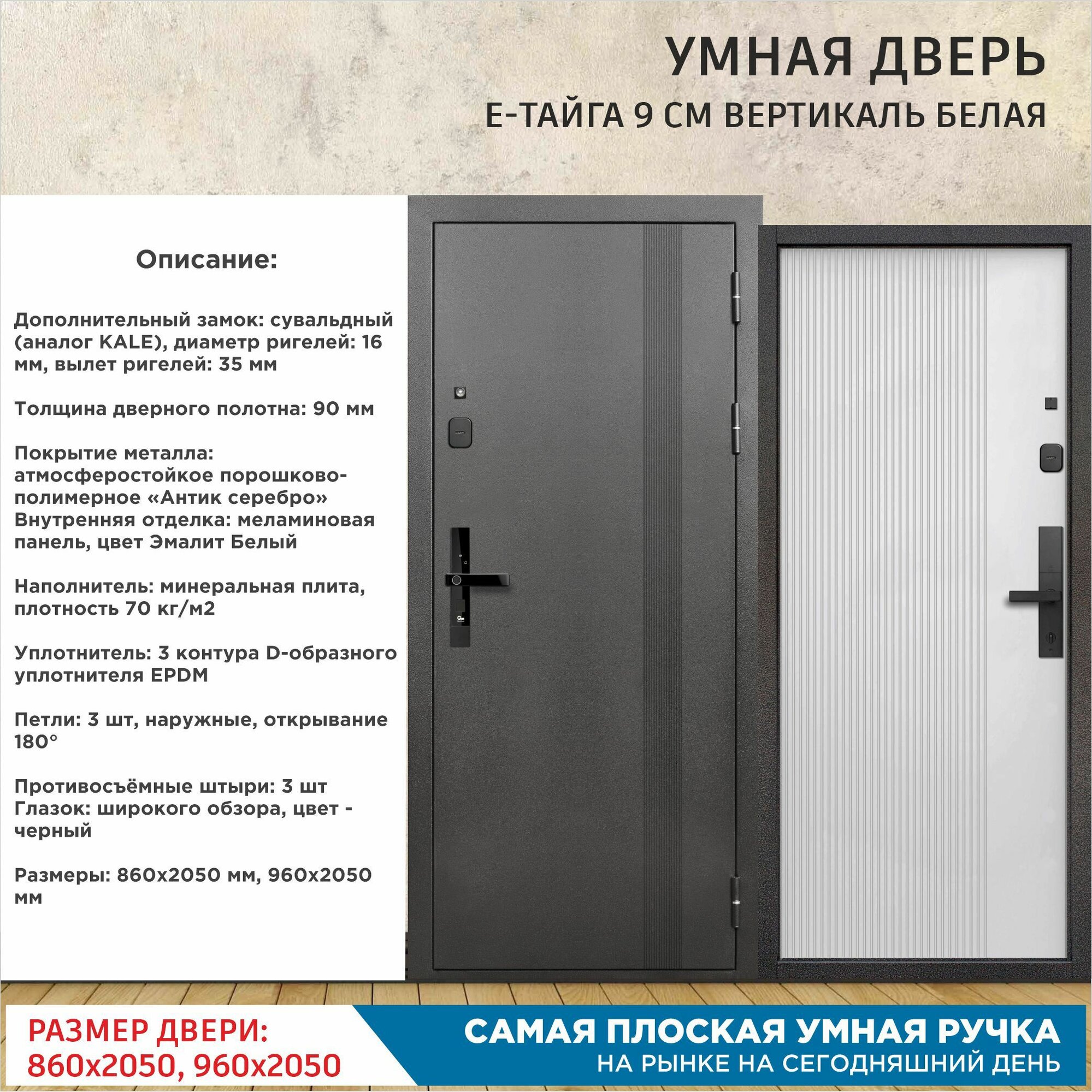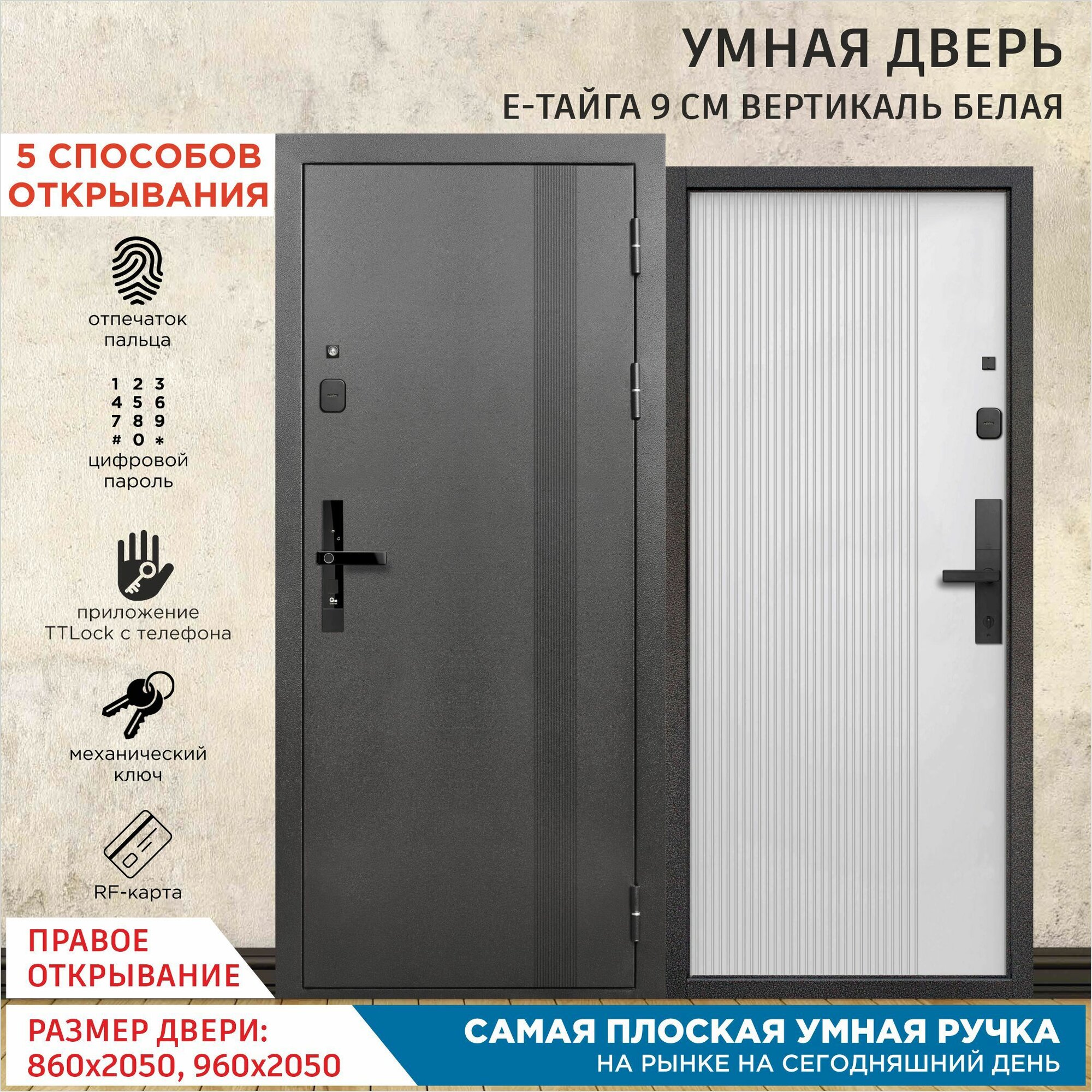 Дверь входная с Умным Эл. замком Gimmel F77 металлическая Е-Тайга 9 см Вертикаль Белая 2050х860 Правая информация: