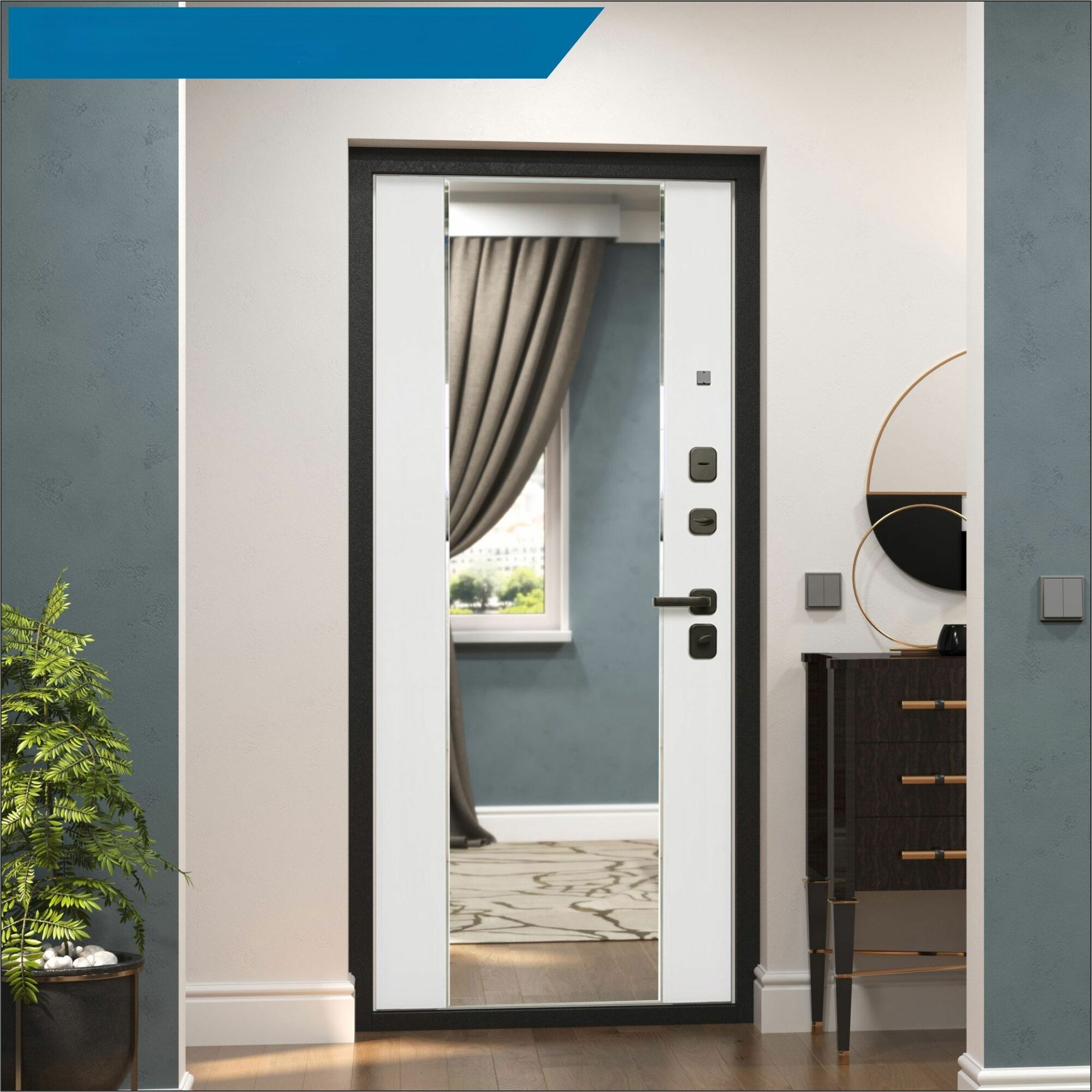 Входная дверь Labirint Лайн WHITE с зеркалом Фацет 960x2050, открывание левое