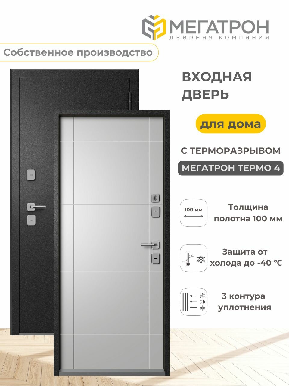 10 цен на Дверь стальная мегатрон Термо-4 Черный букле - Белая шагрень 860*2050 мм правая (терморазрыв)