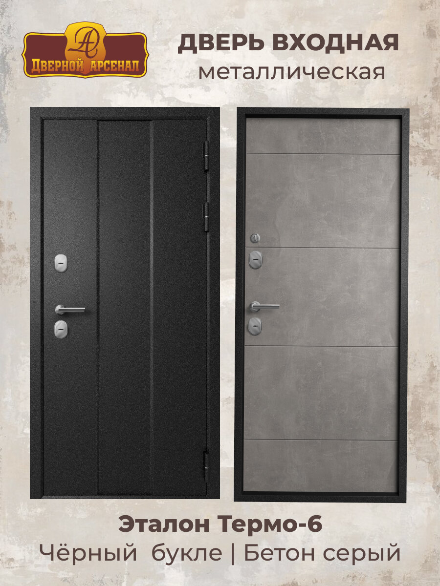 10 цен на Дверь входная металлическая с терморазрывом Эталон Термо-6 Черный букле-Бетон серый 960 левая