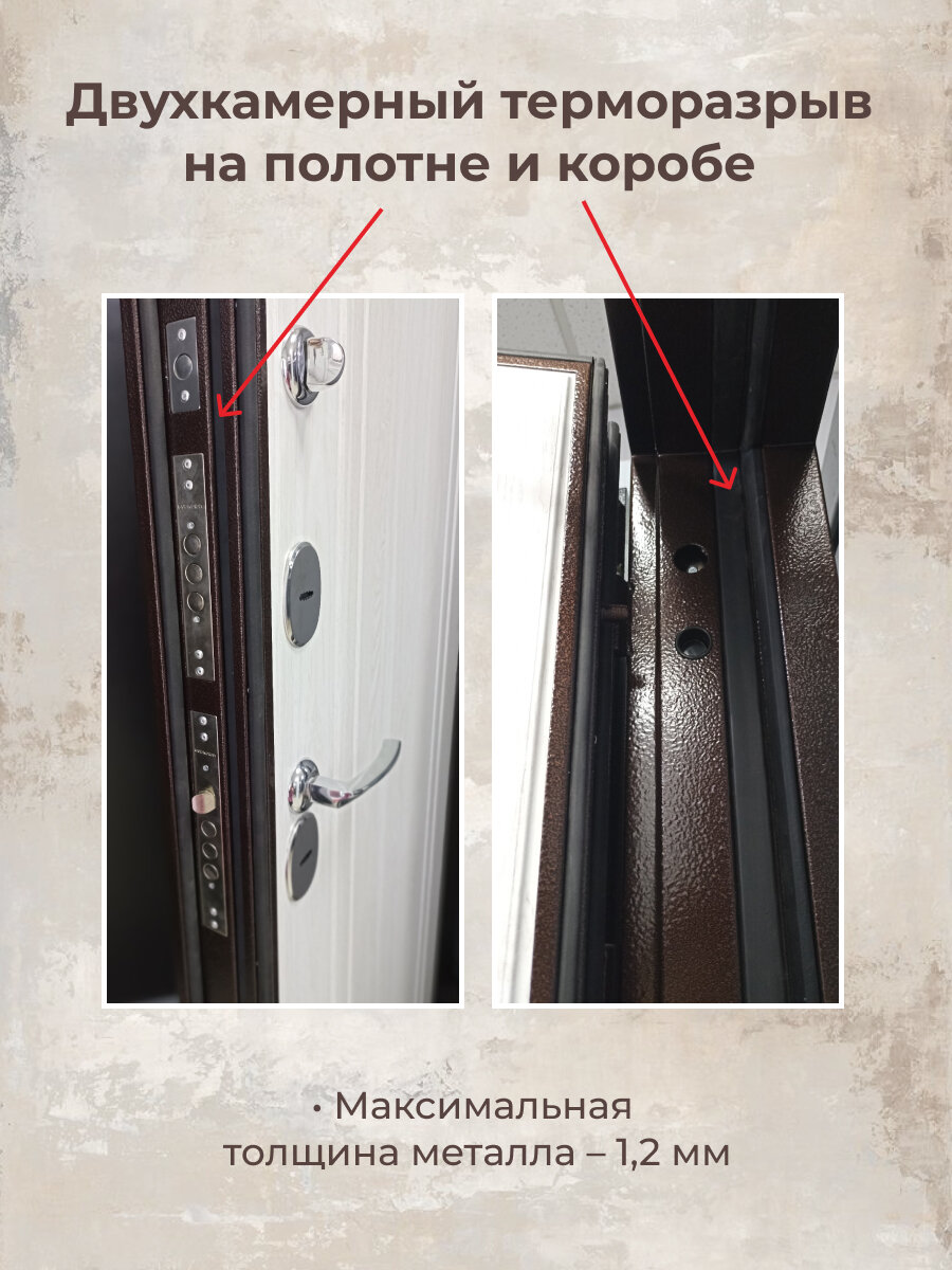 Дверь стальная мегатрон Термо-6 Медь-Астана Эш Уайт 860 Правая (терморазрыв)