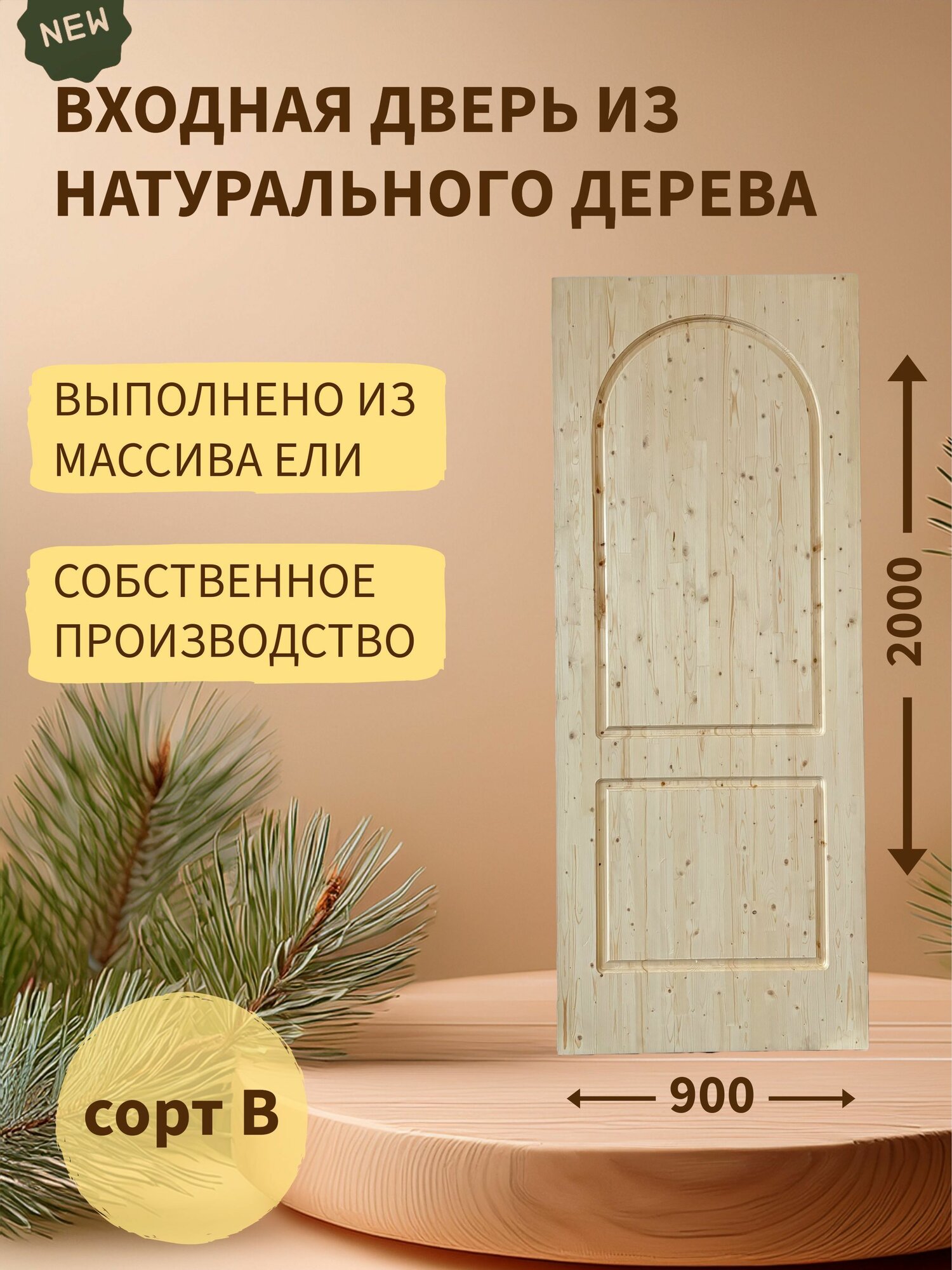 10 цен на Деревянная входная дверь для дома и бань из массива ели (сорт В) 60х900х2000