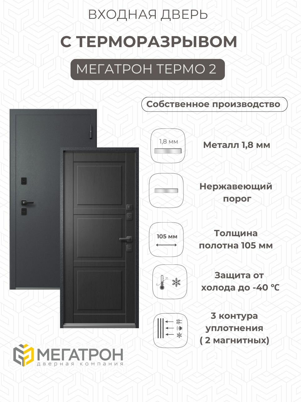 Дверь стальная мегатрон Термо-2 Графит муар RAL 7024 - Ясень Дип Графит 860 левая (терморазрыв) информация: