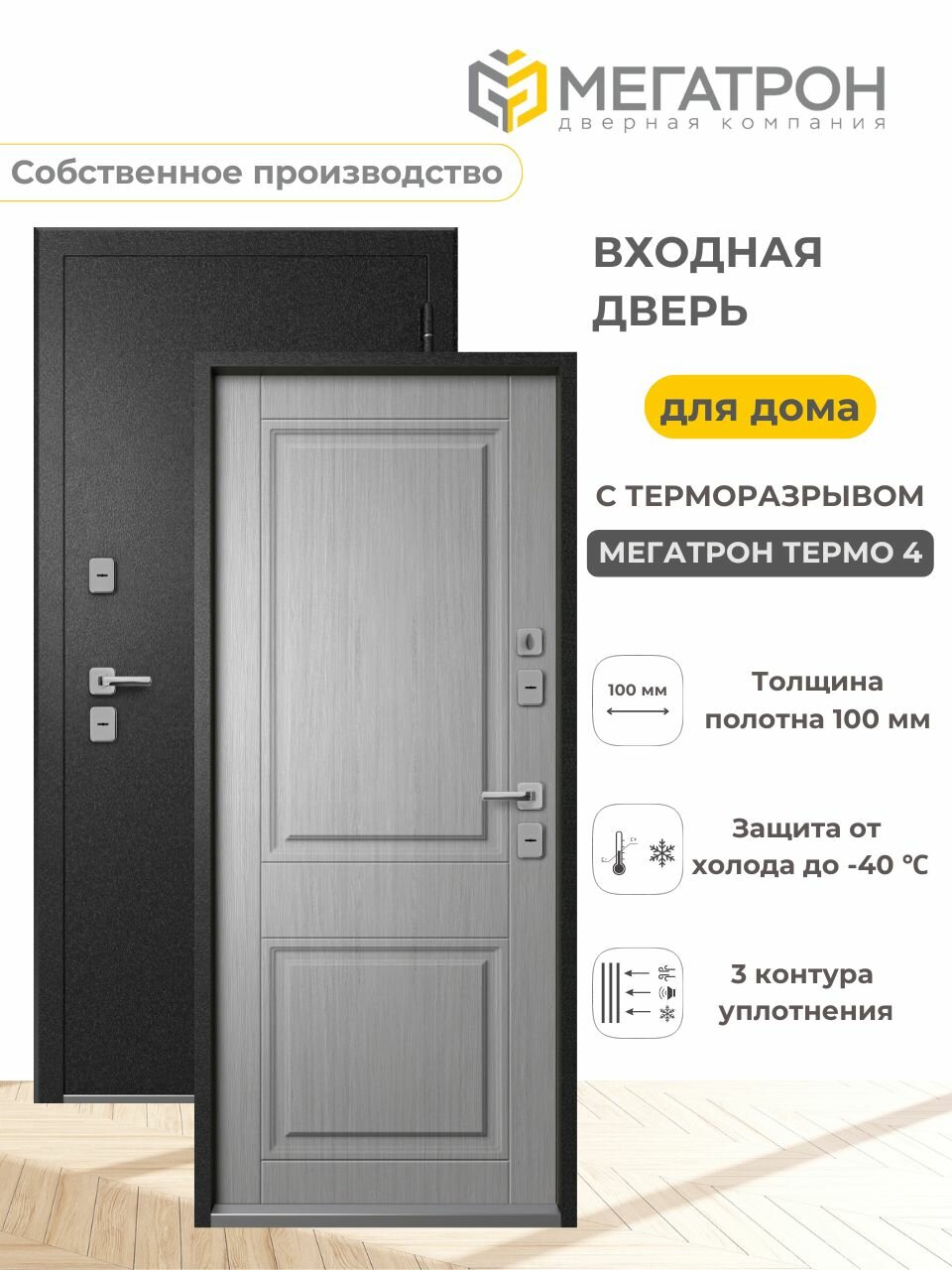 Дверь стальная мегатрон Термо-4 Черный букле - Ривьера милк 860*2050 мм правая (терморазрыв) информация: