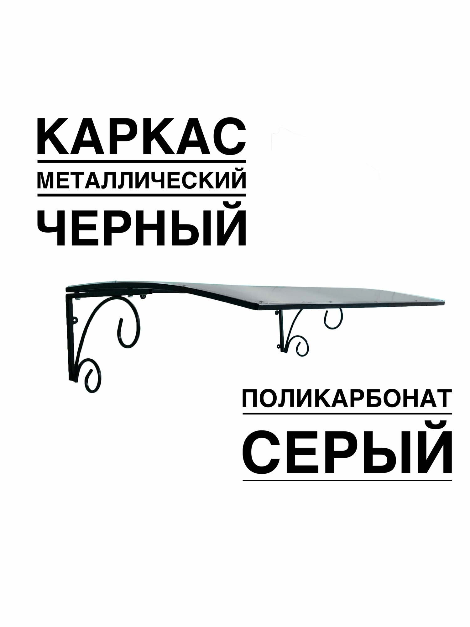 Козырек над входной дверью, над крыльцом YS49SB черный каркас с серым поликарбонатом ArtCore информация: