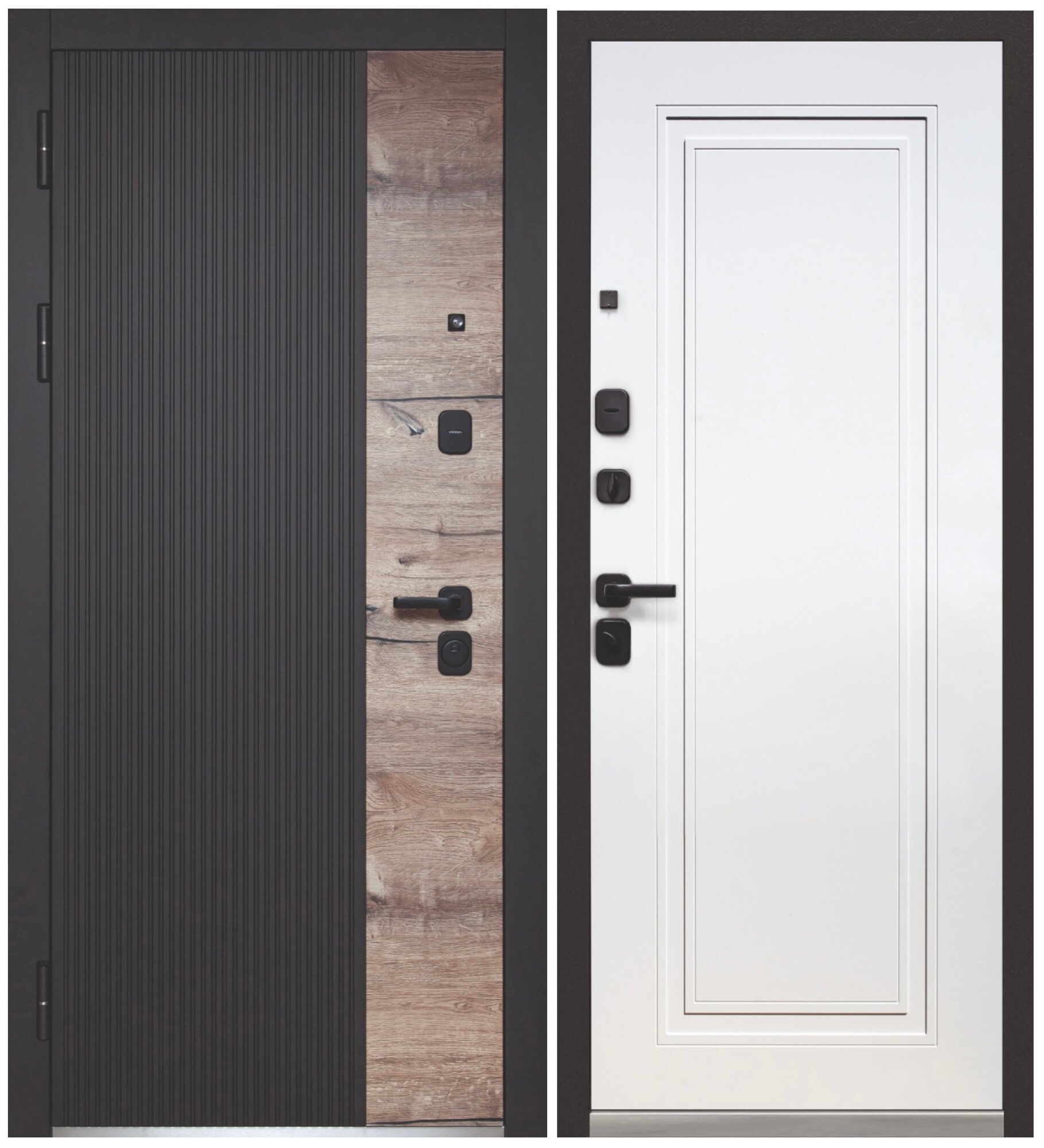 Дверь входная мегатрон WOOD 1 Ясень Дип Графит - Белый снег 860 Правая