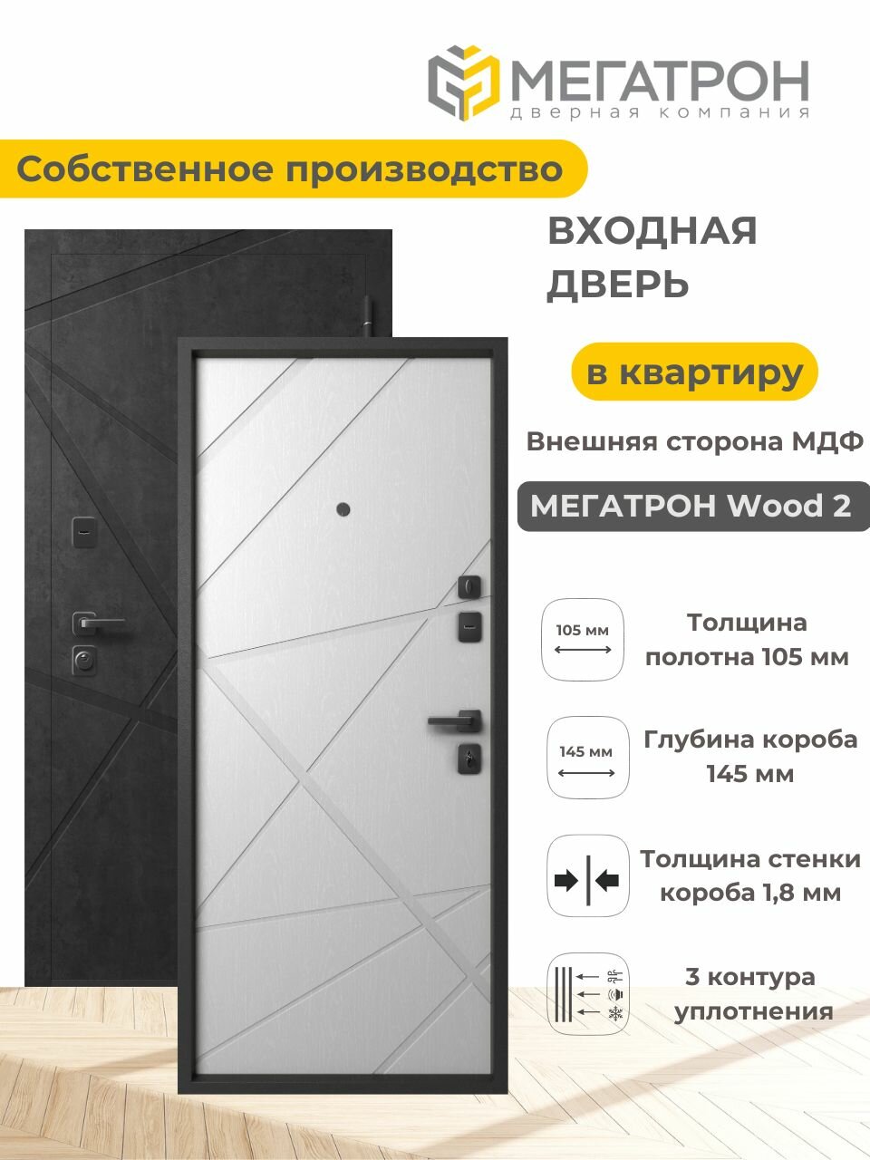 Дверь входная мегатрон WOOD 2 Бетон графит - Белое дерево 860 Левая информация: