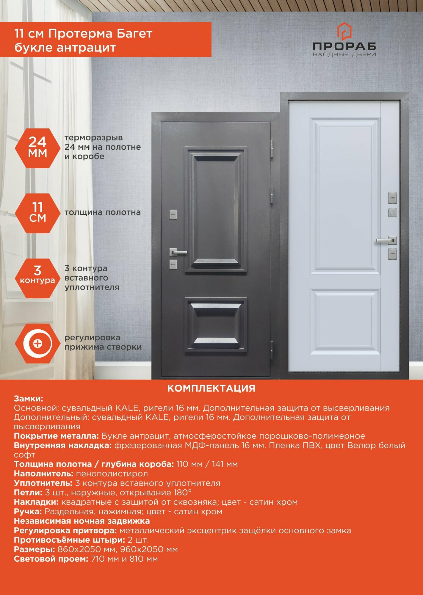 Входная дверь с Терморазрывом 11 см Протерма Багет Букле Антрацит KALE (860мм) левая информация: