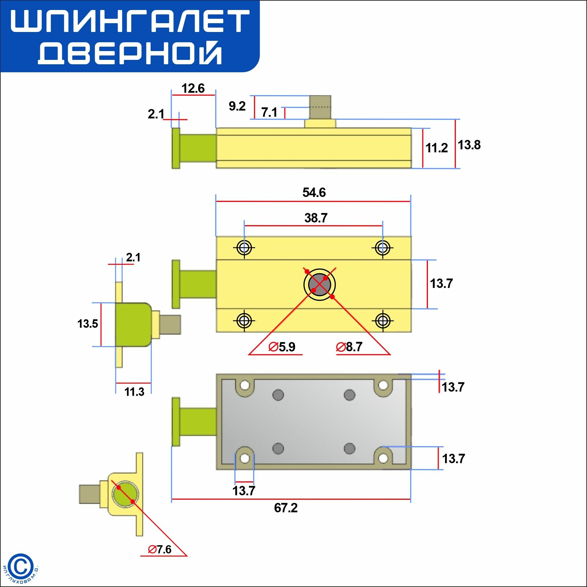 Шпингалет прямоугольный/ задвижка дверная/ шпингалет на дверь, золотистый