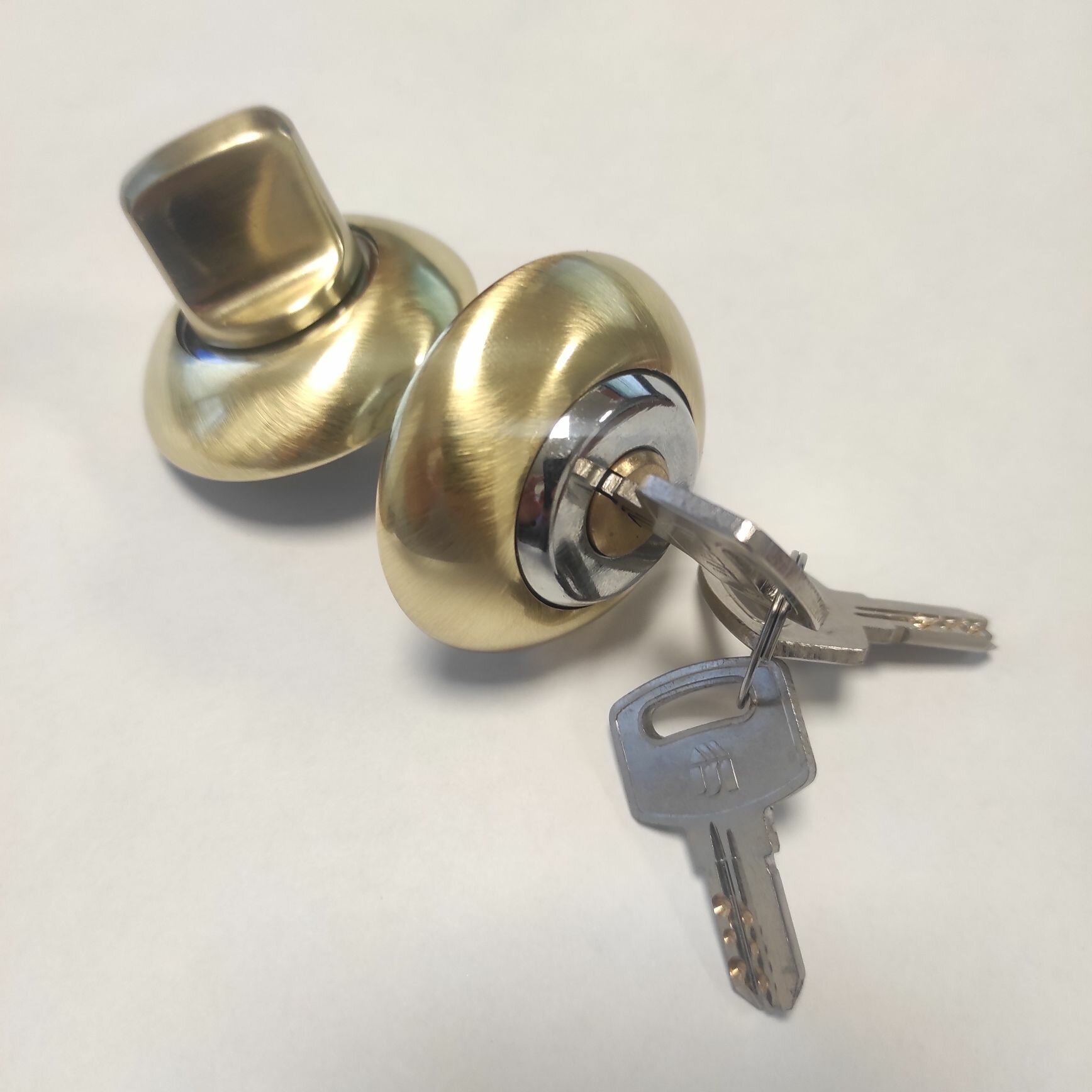 Ручка-защелка дверная межкомнатная (кноб) с фиксатором без ключей стандарт 607 BK AB бронза