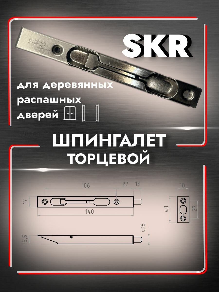 Шпингалет торцевой 140 мм для деревянных дверей, цвет: никель информация: