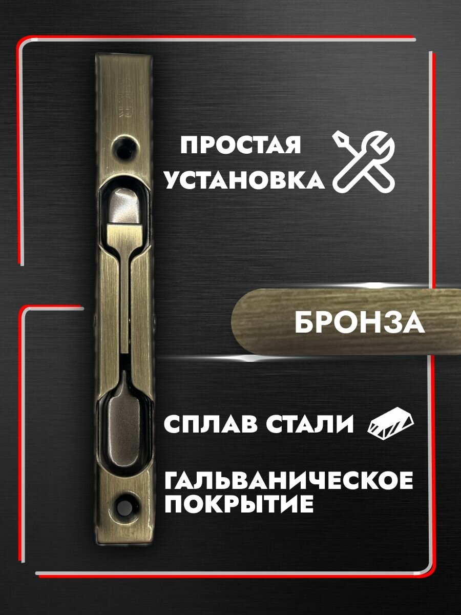 Шпингалет торцевой 140 мм для деревянных дверей, цвет: бронза информация: