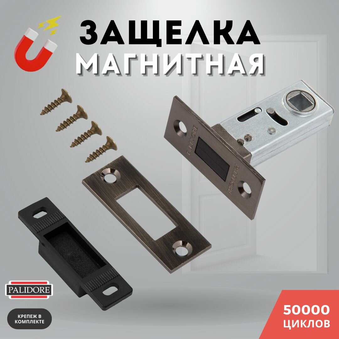 Защелка дверная межкомнатная бронза врезная магнитная м/к 8-45 AB PALIDORE информация: