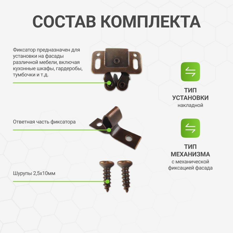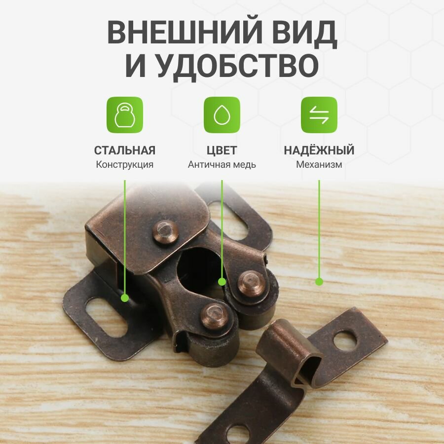 10 цен на Защелка роликовая накладная мебельная, античная медь, 2 шт