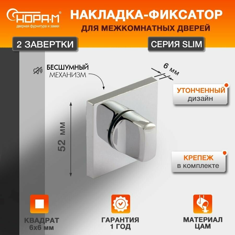 Завертка дверная межкомнатная до 42мм НОРА-М НФ-К Slim - Хром информация: