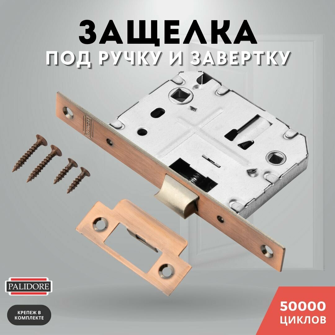 Защелка дверная межкомнатная медь под ручку и завертку L2070 AC сантехническая PALIDORE информация: