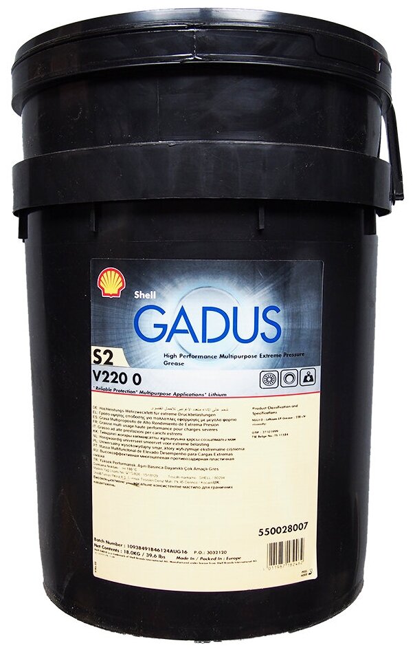 Смазка Пластичная Автомобильная Shell Gadus S2 V220 0 (18 Кг) Shell арт. 550028007 информация: