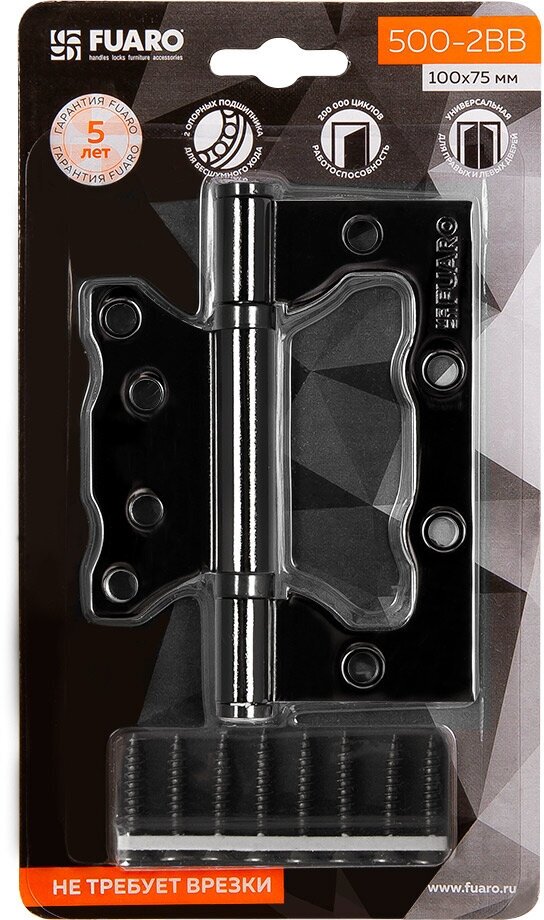 Характиристики этого товара не найдены!Отзывы на Петля Fuaro 500-2BB/BL бабочка универсальная неразъемная 100х2,5 мм черный глянец