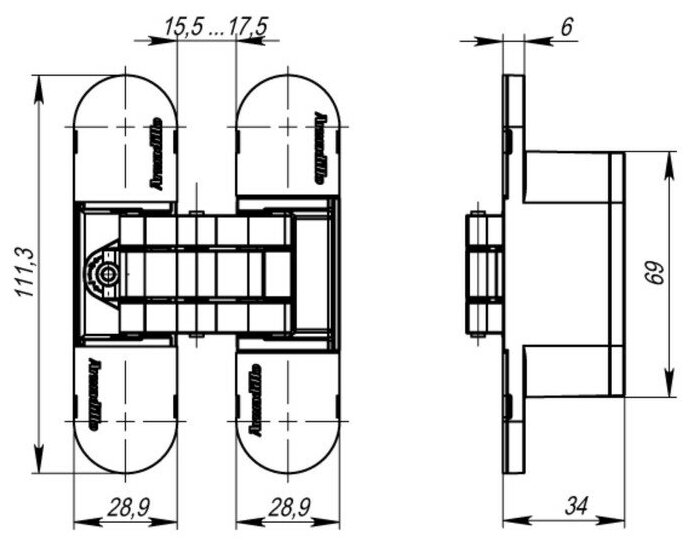 Петля скрытой установки Armadillo Architect 3D-ACH 60 AB Бронза лев. 60 кг (2шт/упак) 2 860 ₽