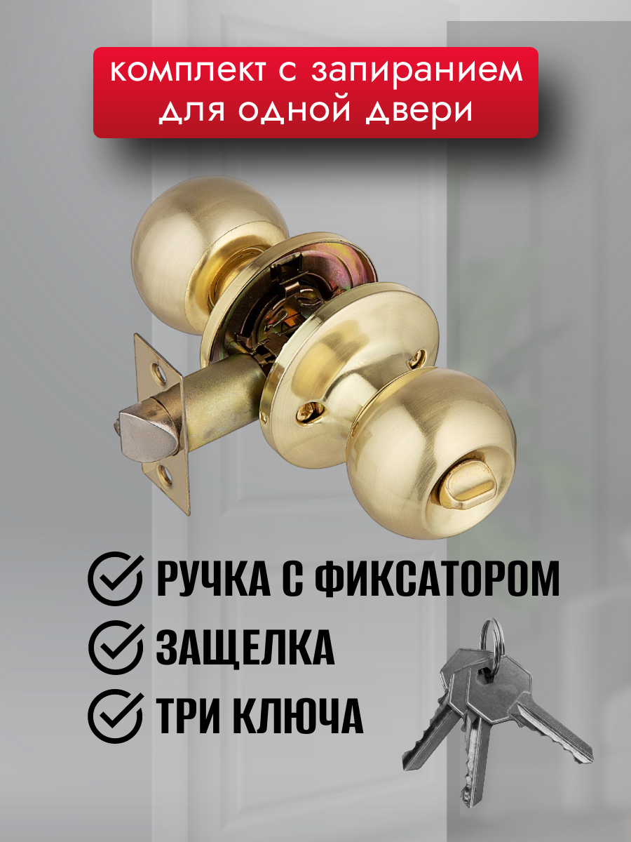 Отзывы на Ручка дверная межкомнатная кноб с защелкой и ключами золото матовое комплект 607 SB ET