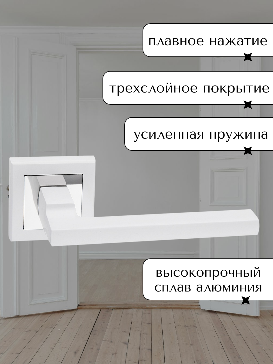 Межкомнатная ручка, квадратная, плавная, поворотная, алюминий, белая информация: