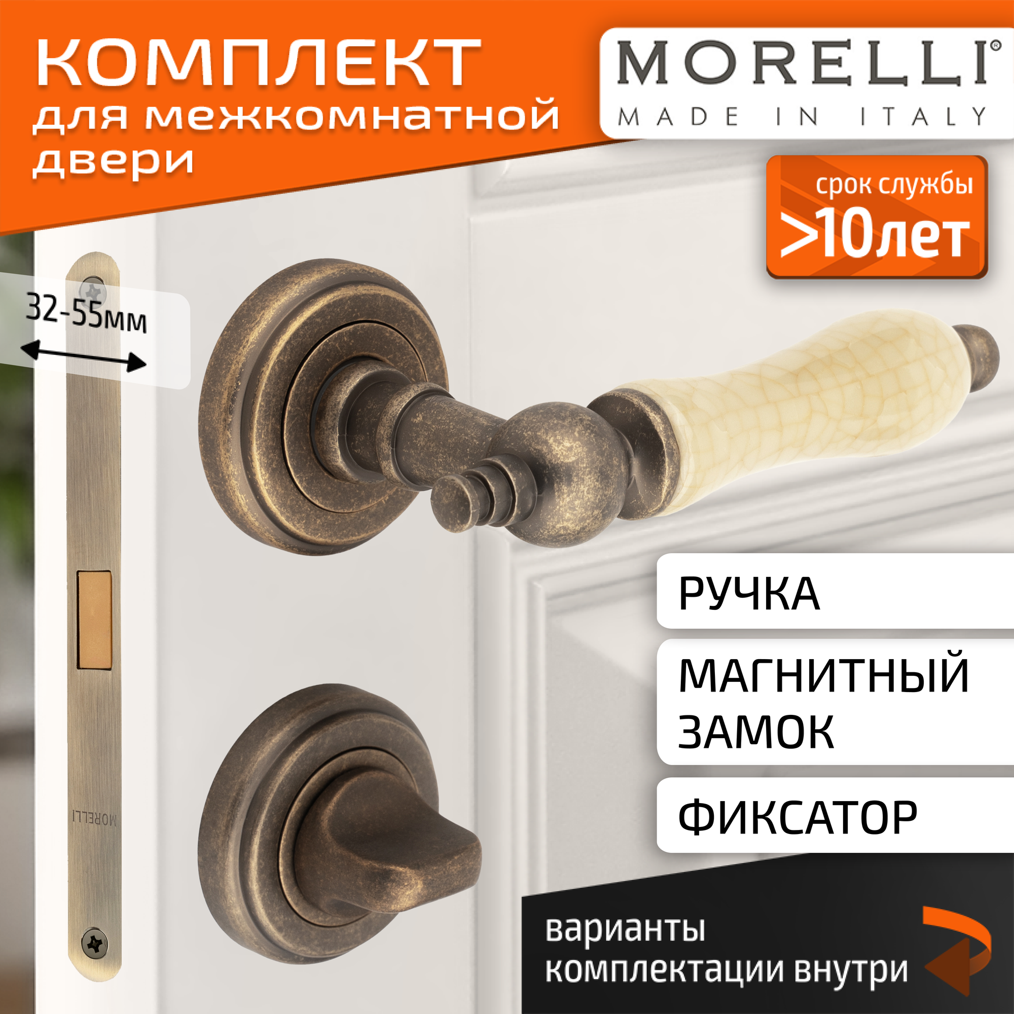 10 цен на Комплект для межкомнатной двери Morelli ручка MH 42 OMB/CH + поворотник + магнитный замок /старая матовая бронза-шампань