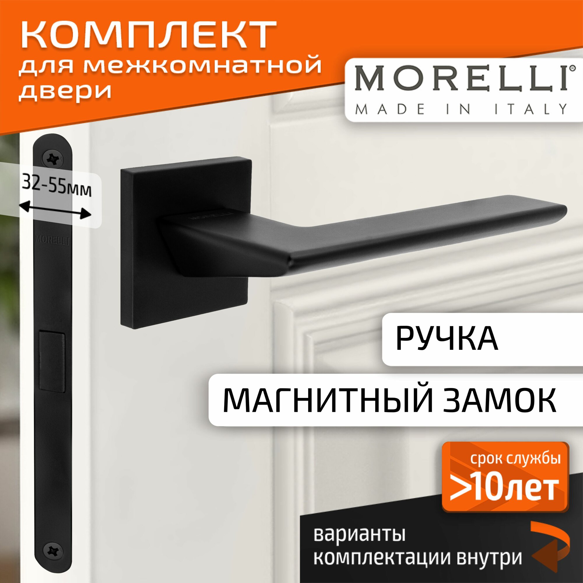 Отзывы на Комплект для межкомнатной двери Morelli / Дверная ручка MH 51 S6 BL + магнитный замок / черный матовый