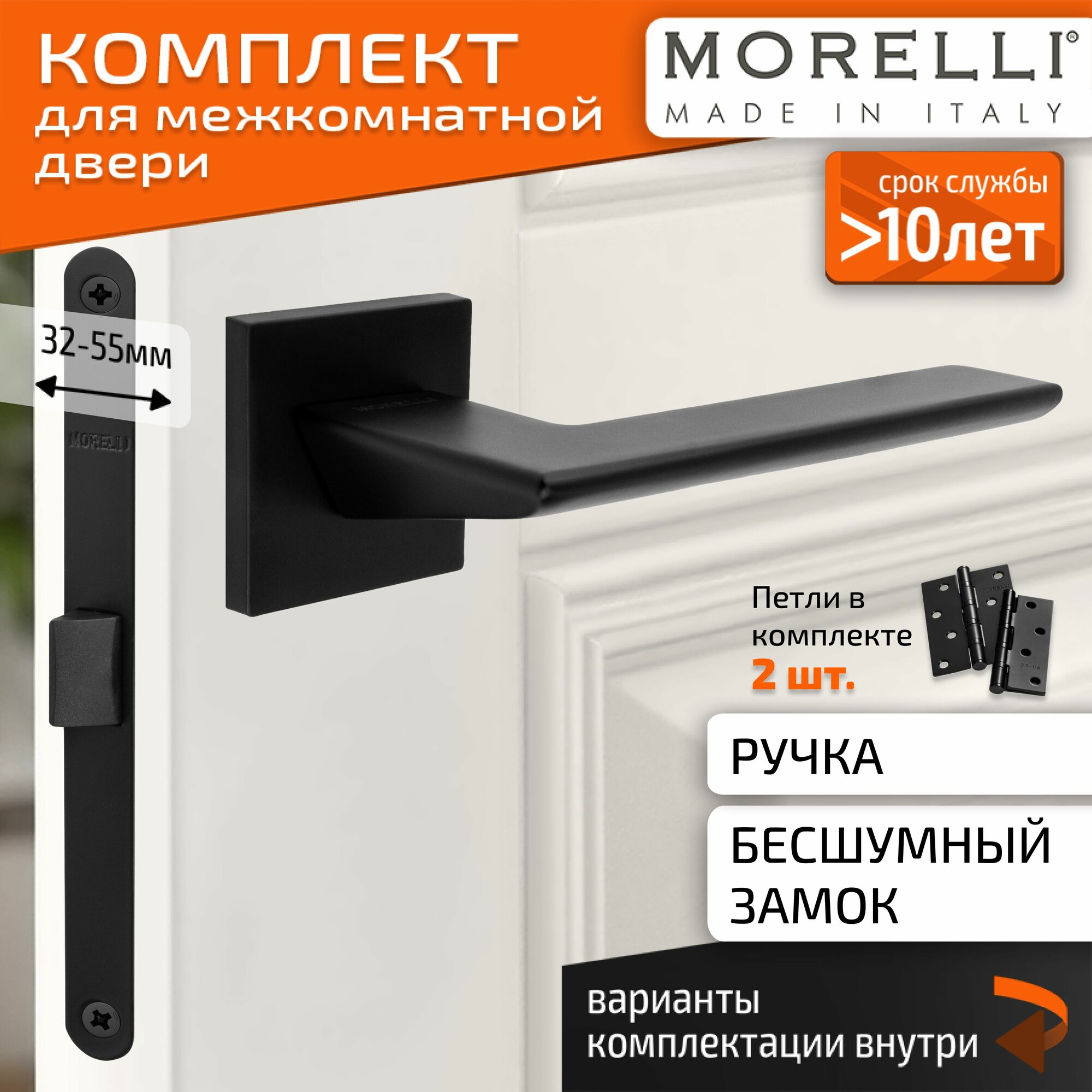 Отзывы на Комплект для межкомнатной двери Morelli / Дверная ручка MH 51 S6 BL + бесшумный замок + врезные петли / черный матовый