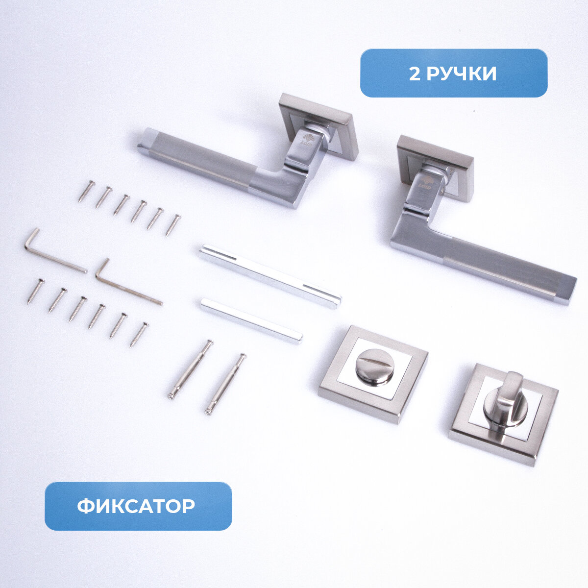 10 цен на Ручка дверная межкомнатная, поворотная, нажимная Loid 310 SN с фиксатором квадратная SN/CP матовый хром/хром