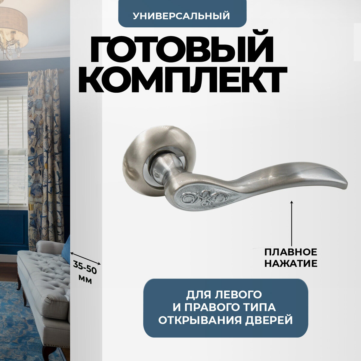 Ручка дверная межкомнатная, поворотная, нажимная Loid 350 SN + замок M-2055 B SN + завертка квадратная SN/CP матовый хром 1 359 ₽