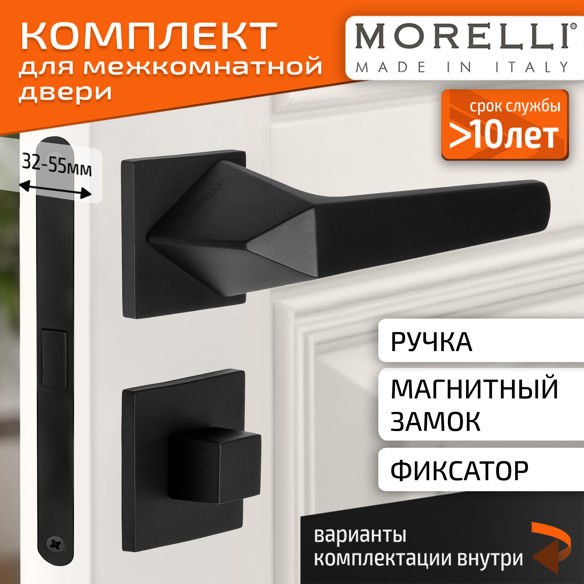 Отзывы на Комплект для межкомнатной двери Morelli / Дверная ручка MH 55 S6 BL + поворотник + магнитный замок / черный матовый