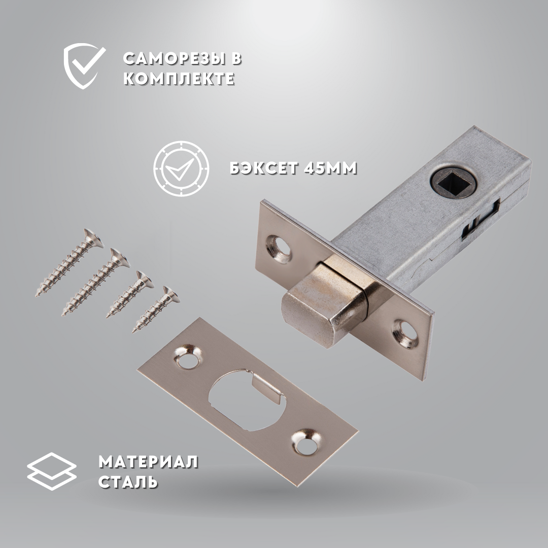 Ручка дверная межкомнатная +защелка, квадратная розетка, цвет никель 1 208 ₽