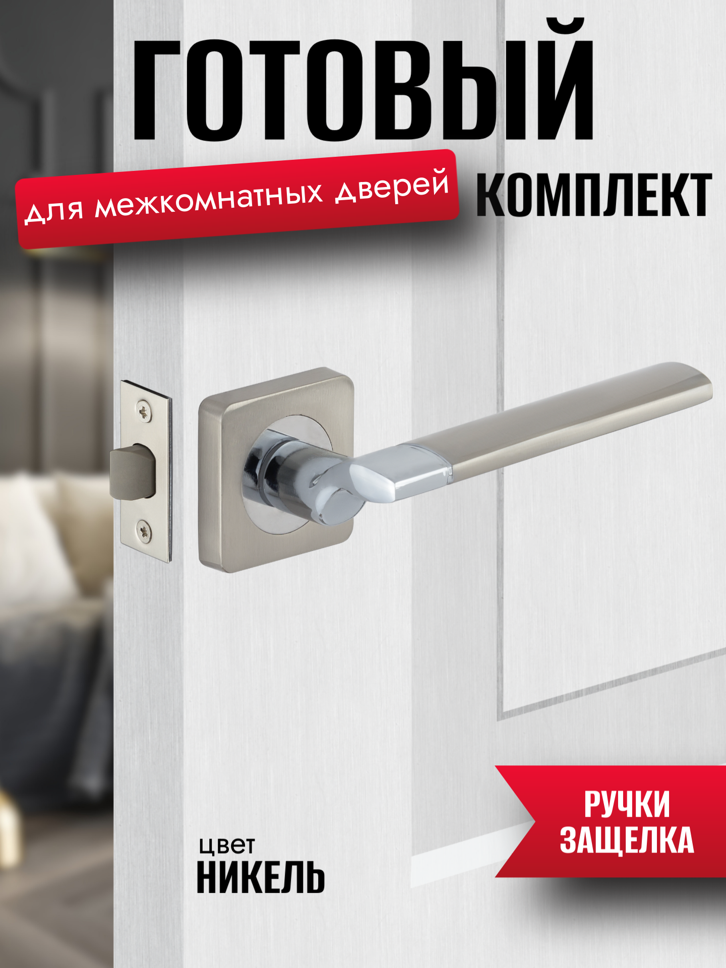 Отзывы на Ручка дверная межкомнатная +защелка, квадратная розетка, цвет никель