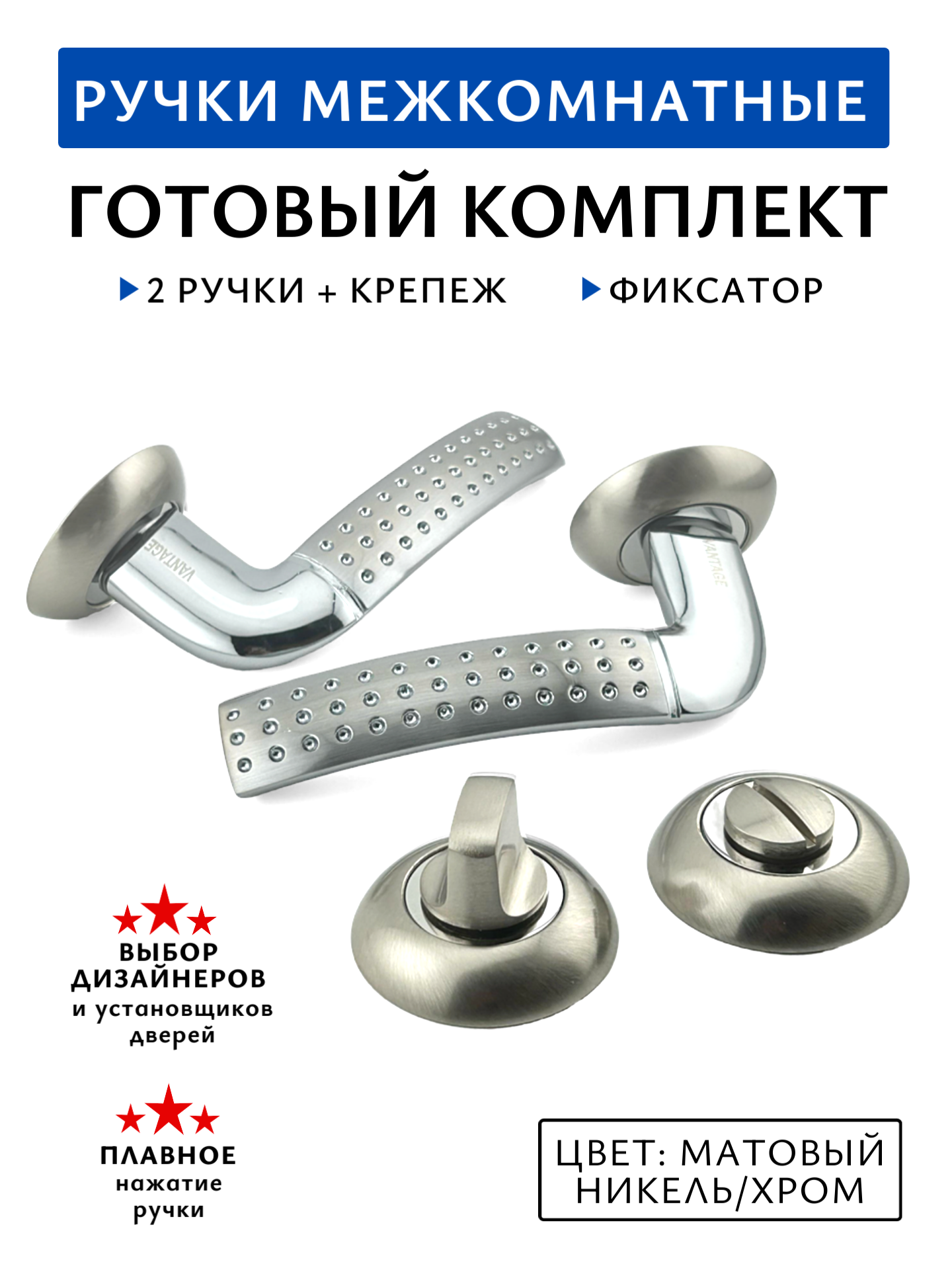 Отзывы на Готовый комплект для межкомнатной двери, ручка + фиксатор, хром/матовый никель