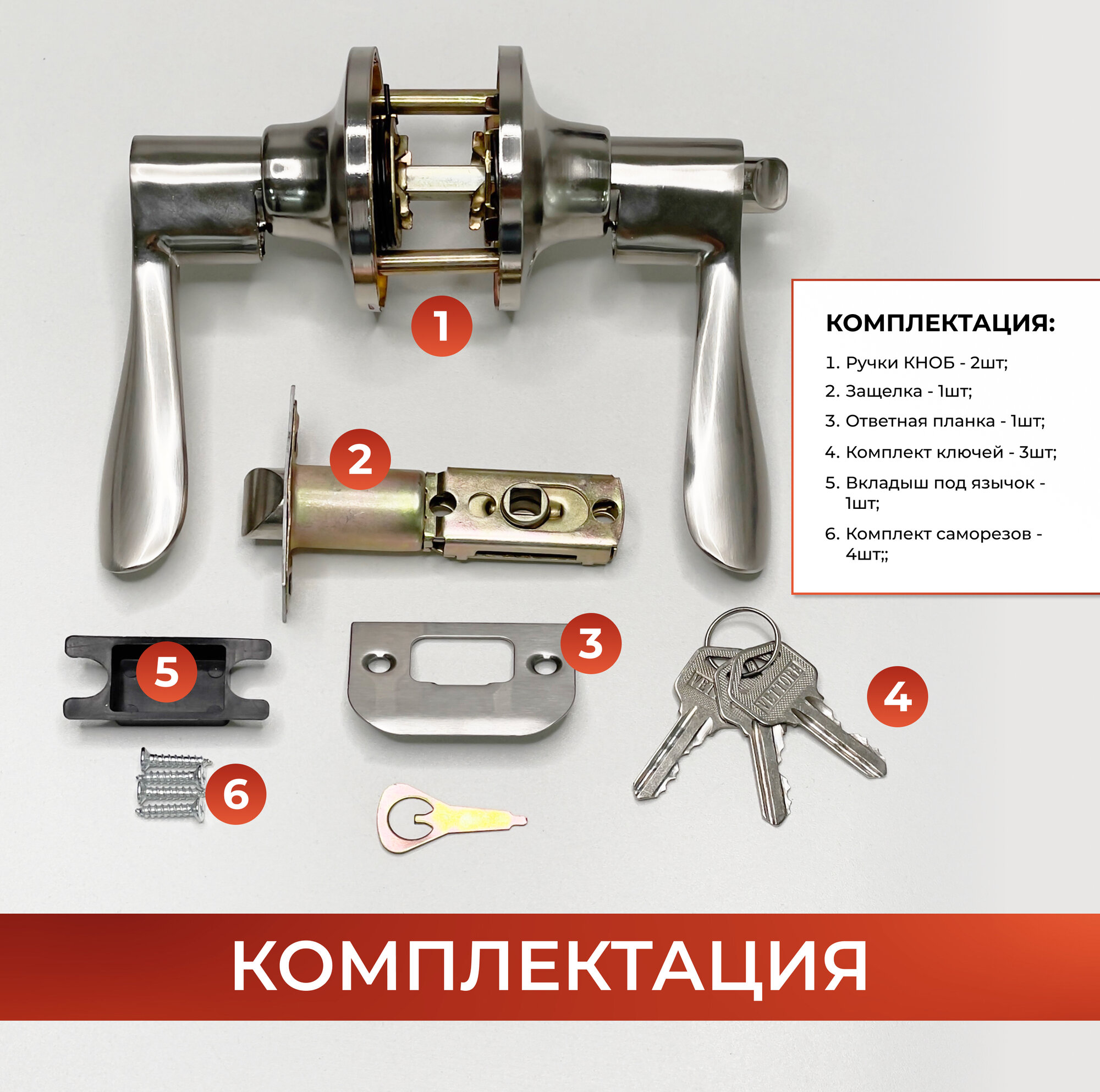 Ручка дверная межкомнатная хром блестящий с защелкой, заверткой и ключами комплект